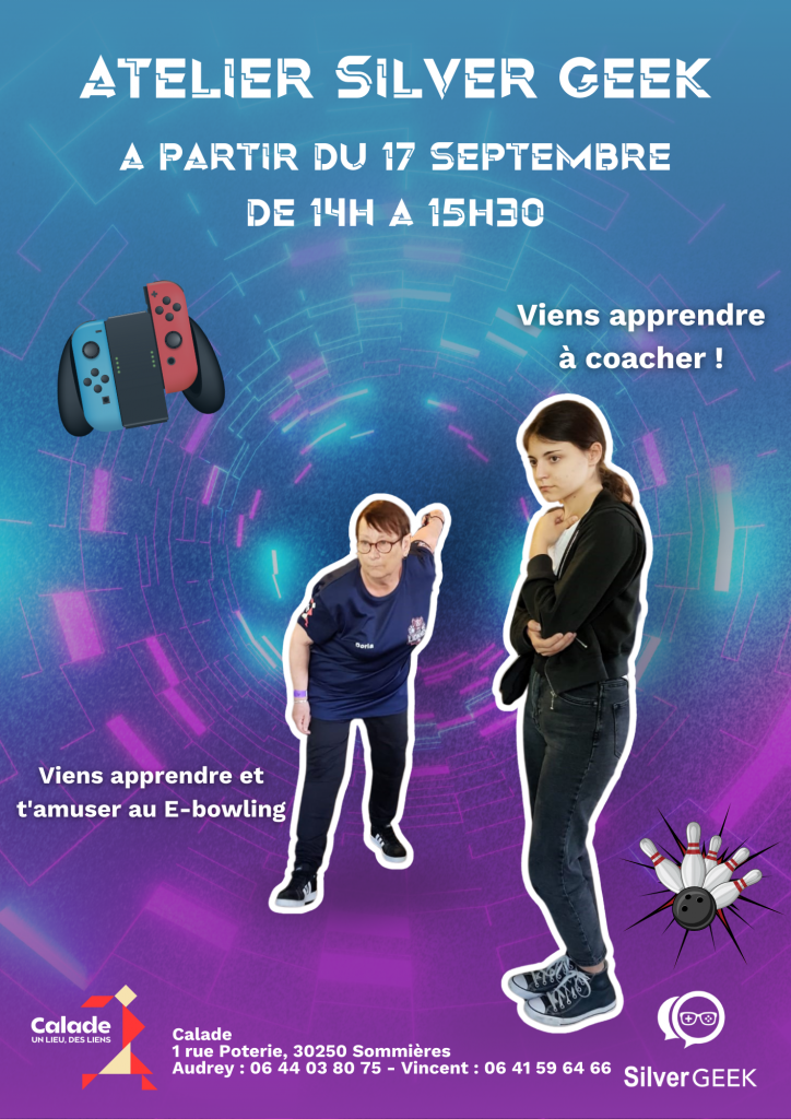 À Calade, nous relançons dès le 17 septembre des ateliers Silver Geek, un programme unique qui réunit séniors et jeunes autour du E-bowling sur Nintendo Switch.