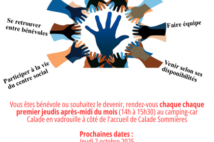 Calade, en collaboration avec les communes, les associations et divers partenaires, poursuit son action itinérante : Calade en Vadrouille. Grâce à un camping-car aisément reconnaissable …